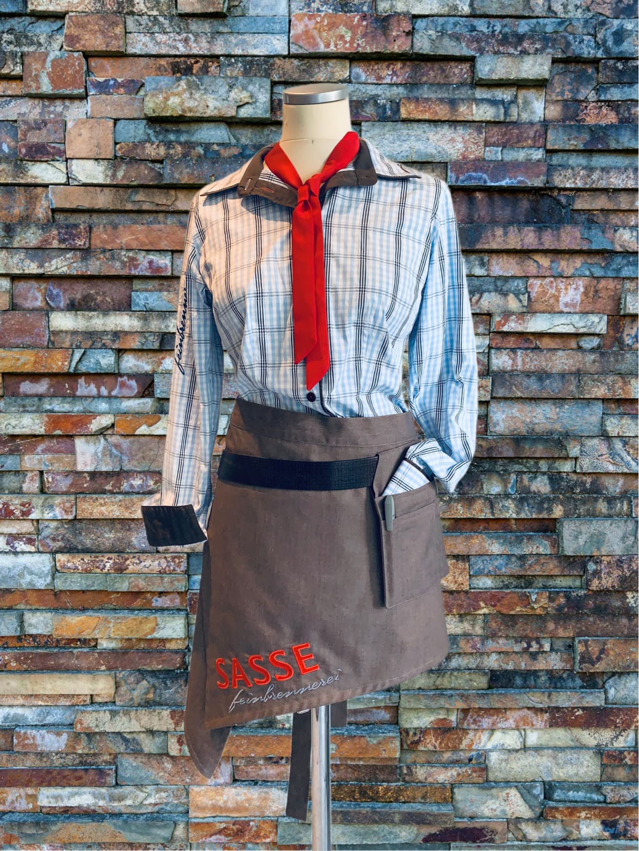 Qualität, Passform, Gebrauchstüchtigkeit und vor allem Design überzeugen uns bis heute. Bis ins Detail wurde daran gefeilt, dass sowohl das Logo als auch die Knöpfe den Gesamteindruck abrunden und den Corporate-Gedanken widerspiegeln. Die angebotene Größenpalette sowie die Bereitschaft, individuelle Änderungen von Ärmellängen vorzunehmen ergänzen den Service.